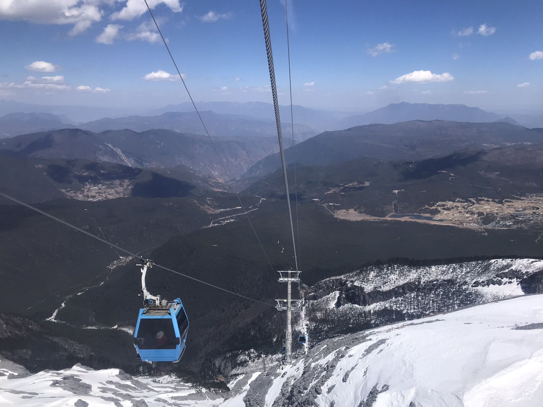 玉龙雪山冰川大索道全长2914米,垂直高差1150米,是我国海拨最高的旅游客运索道之一。云杉坪索道(小索道)全长约1000米,上下高差约300米,运行时间约3分钟便可到达上部站云杉索道。
