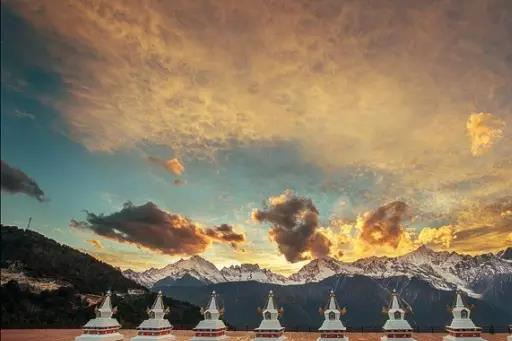 从飞来寺沿着公路前行1公里即可抵达“明珠拉卡”,也就是飞来寺观景台所在地,这里是向卡瓦格博敬香的地方,也是观看梅里雪山“日照金山”的最佳场所,不过观看“日照金山”需要机缘,切勿强求,以免希望越大失望越大。