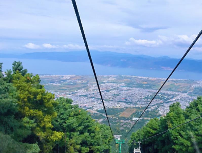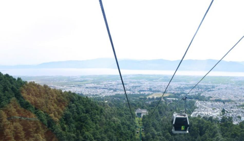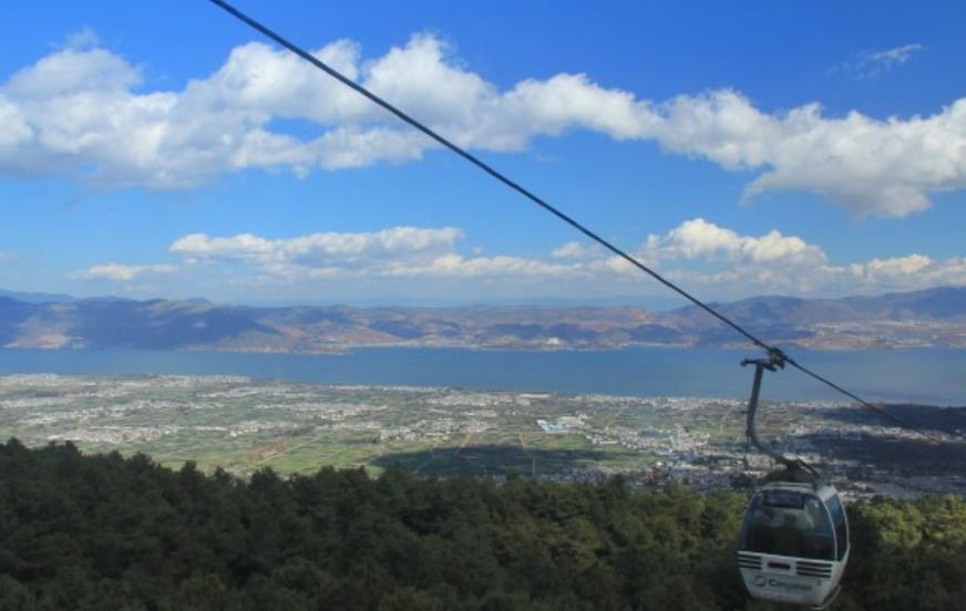它是敞开露天式的吊篮索道,可风雨无阻、浪漫地体验苍山美景,长约1.6千米,索道下站位于大理古城三月街赛马场西,上站至中和寺,可谓“道头观一寺”。