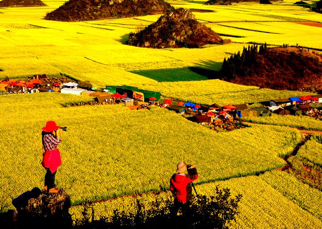 2月初罗平油菜花才慢慢盛开,一簇簇金黄。2月底时,罗平已变成油菜花海了,放眼望去都是金黄,面积巨大的油菜花海,沿着乡间的小路行走,看到道路两侧大面积的油菜花,十分的惊心动魄。油菜花漫山遍野的开,那个时候是真的美炸了!喜欢旅游拍照的小可爱,这个景是绝对不能错过,拿出来相机,随便拍个角落都是一张成功的照片。