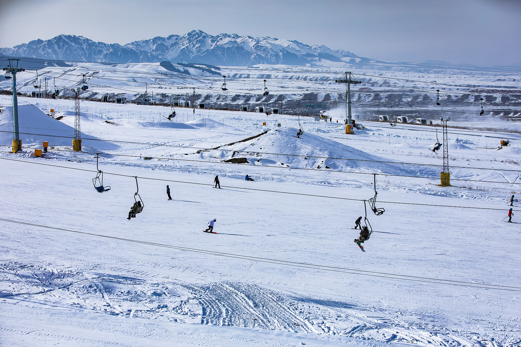 天山滑雪场,位于天山附近的甘沟乡金泉沟,滑雪场距离甘沟乡政府约6公里,其西侧为菊花台,东侧为白杨沟。共有8条索道、3条缆车线路和4条雪道。天山滑雪场冬季冰雪资源丰富,是新疆旅游新的选择。