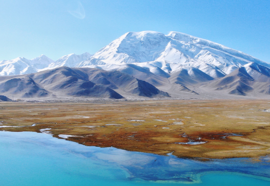 卡拉库里湖卡拉库里湖位于冰山之父--慕士塔格峰的山脚下,距离喀什191公里,中巴公路从湖畔经过。卡拉库里意为黑海,是一座高山冰蚀冰碛湖。水面映衬着巍峨又神秘的慕士塔格峰,白雪皑皑,山水同色,景色十分迷人。卡拉库里湖是世界上少有的高原湖泊。湖的四周有冰峰雪岭环抱,特别是周围的公格尔、公格尔九别峰和慕士塔格峰更为这个湖增添了神奇而美丽的色彩。在风平浪静的日子里,皑皑银峰、绿色草原和湖边畜群倒映在湖中,异常优美。