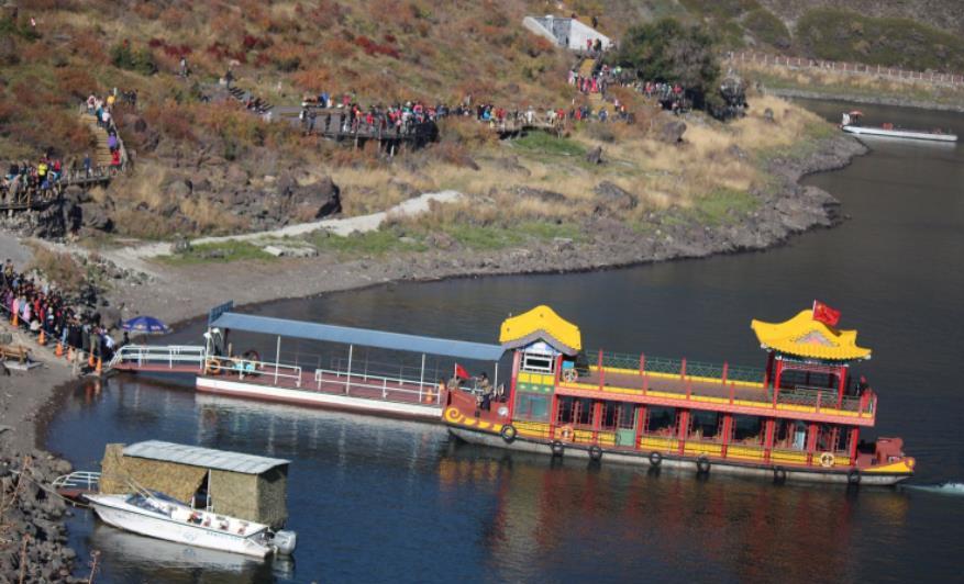 在天池的东岸,有西王母庙,始建于元朝,目前看到的是1999年在原庙址上重建的建筑,里面供奉着王母娘娘,所以也称“娘娘庙”。区间车下车点靠近天池的东岸,沿着栈道步行到西岸的王母庙大约1.5小时。因为距离较远,加之景色一般,并不建议专程前往。