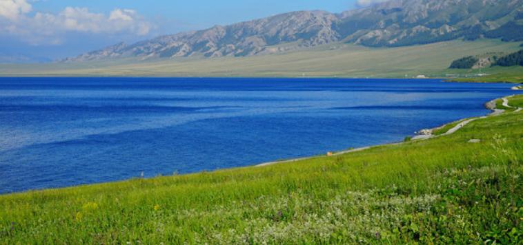 赛里木湖景区简介:赛里木湖位于新疆西部的博尔塔拉蒙古自治州,背靠雪山。湖边是广阔的草原,湖水清澈蔚蓝,风光美不胜收,是新疆知名的几大景点之一。每年六、七月份就到了赏花季,届时湖边草原上开遍了各色的野花,是不可错过的盛景。