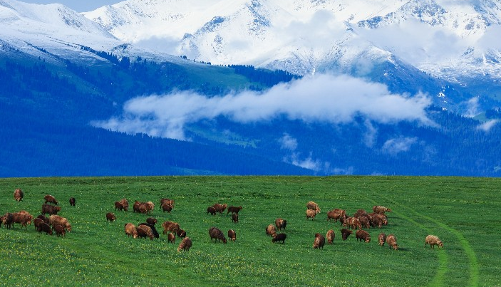 巩乃斯草原主要指巩乃斯河系贯通的河谷山地草原,是伊犁多类型草场的典型分布区;蒙语意为“太阳坡”,分布在新疆巴州和静县境内。每年6-9月是巩乃斯草原的黄金旅游季节。