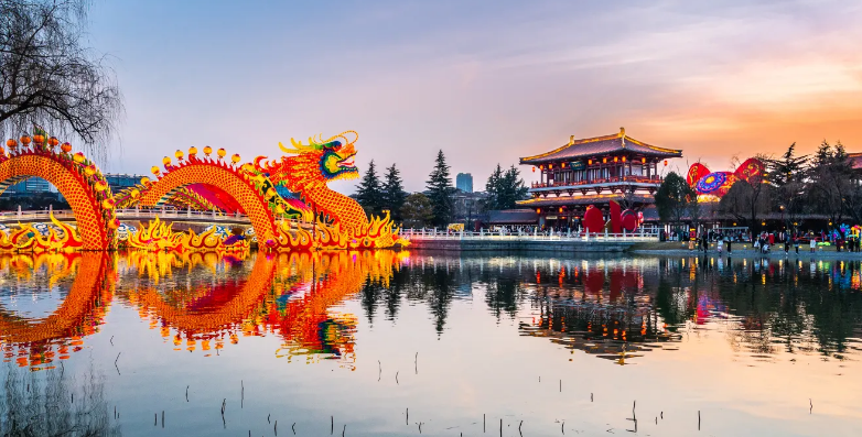 为国家级AAAAA旅游景区,包含大雁塔景区和芙蓉园景区。来西安赏雪景,就不能不看雪后的芙蓉园和大雁塔,雪中的芙蓉园,除了皇家园林的大气与庄重,更平添了一份纯净的简单美。雪中的大唐建筑,气势更加的恢弘。漫步其中,纯白的雪花轻柔的覆盖在芙蓉园的角落,美不胜收。雪后的大雁塔,千年古塔的雪雨风霜,为大雁塔戴上了雪帽。每年2月上旬左右,也就是春节前后,大唐芙蓉园都会举办一年一度的“大唐芙蓉园新春灯会”活动,持续到3月中旬左右,横跨春节、情人节、元宵节,万盏花灯装扮下的大唐芙蓉园分外喜庆,水景与灯火融为一体,古韵华章,流光溢彩、如梦如幻美到令人窒息。