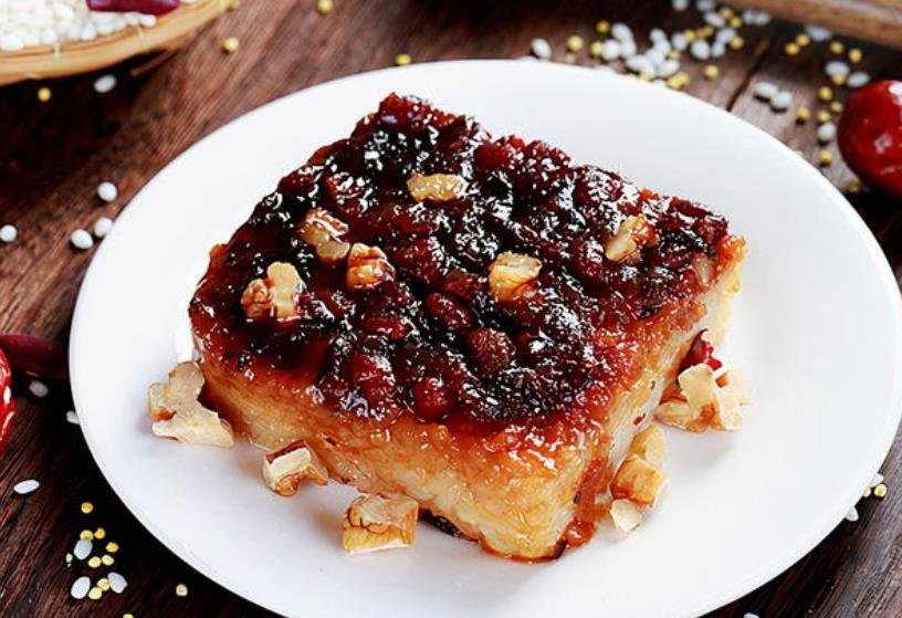 甑糕是陕西的传统风味小吃,是用糯米、红枣等一起蒸制而成的。单从制作的炊具上来看就知道这是一道有历史的美食,因为是一种底部有小孔的古老炊具,最早的陶甑还是出现在新石器时代,距今已有几千年的历史了。