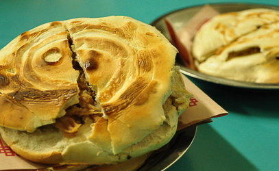 腊汁肉夹馍外地人首次听说肉夹馍,都认为是病句,这是与古汉语有关,肉夹馍,其实是肉夹于馍。“肉”字放在前面起到强调的作用,引人垂涎。西安的肉夹馍有很多种,最出名是汉民的腊汁肉夹馍和回民的腊牛肉夹馍。陕西人所说的肉夹馍一般是指,白吉饼加腊汁肉。