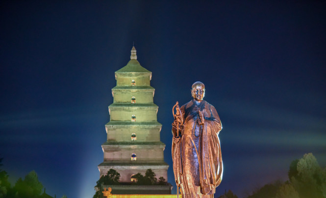 《再回大雁塔》:如梦如幻的场景布置,让千年时光跟随卷轴流动,绘就万里丝路上商贾云集的盛景,玄奘执着理想的信念,更是指引无数人前行的明灯。