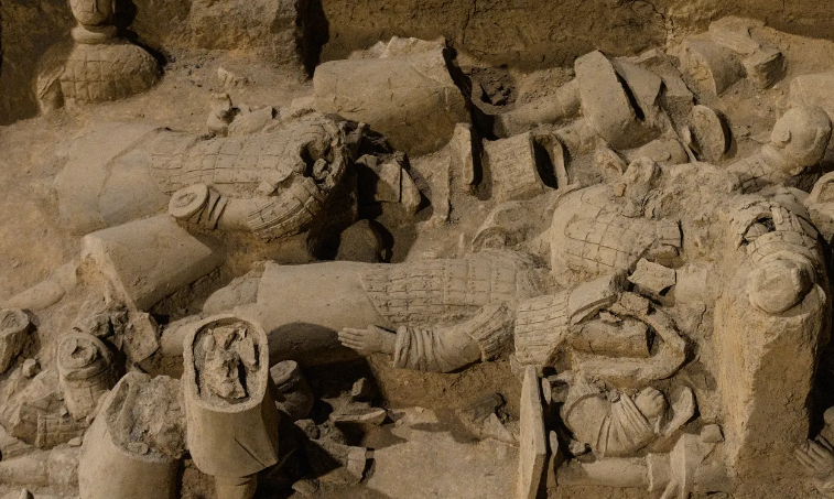 三号坑于1976年5月发现,1989年9月27日对外开放。俑坑面积520平方米,平面呈“凹”字形,分为南区、北区、中区三个单元。这座俑坑尽管小,但性质很重要。考古专家认为,它应当是统率一、--号坑军阵的指挥机关。从位置.上来看,三号坑位于一、二号坑的后方,位置隐蔽、相对安全。基于以上特点判断,三号坑很可能是整个地下大军的指挥机关。