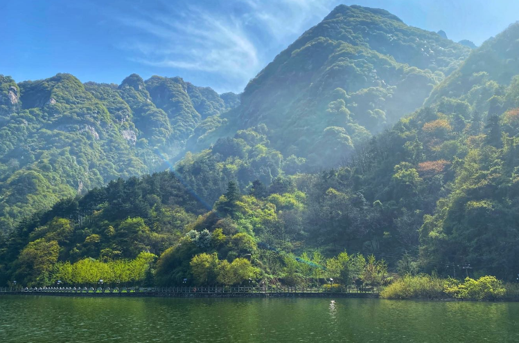 三、翠华山奇湖翠华山奇湖众多,主要有天池堰塞湖、甘湫池堰塞湖和大坪堰塞湖。山崩后山谷两侧形成的垂直断裂面,犹如刀削过一样,光滑陡峭,十分险要,气势磅礴。