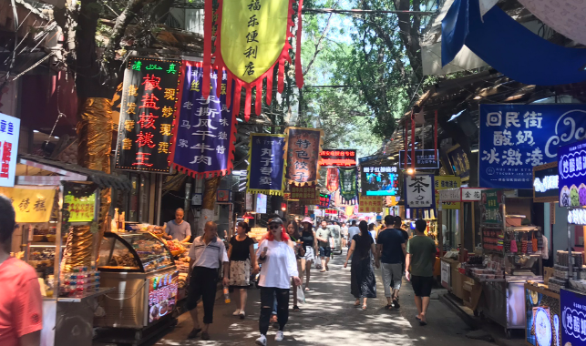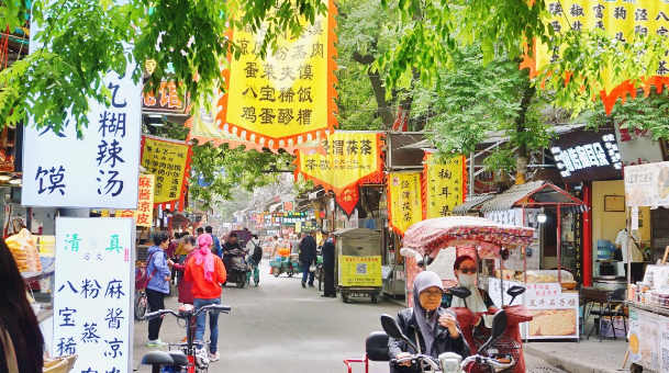 回民街由北广济街、北院门、西羊市、大皮院、化觉巷、洒金桥等数条街道组成,在钟鼓楼后面;街区内众多街道具有浓郁的伊斯兰风格,有肉夹馍、羊肉泡馍、凉皮、岐山面等美食。