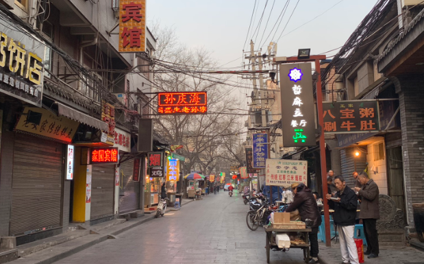 北广济街是一条西安人所熟知的老街,今天这里以各种特色小吃而著称;这条街所在地是隋唐长安皇城,以及五代宋元西安城的南北中轴线,街南头的迎祥观中曾建有西安市的标志性建筑钟楼。