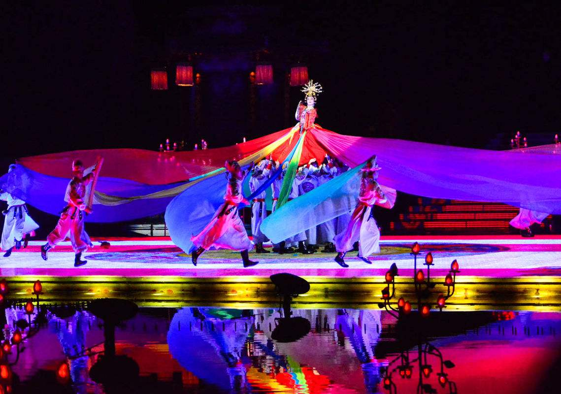长恨歌在华清宫里面的九龙湖风景区演出。