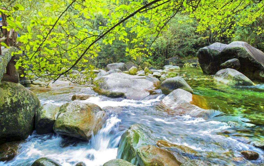 大鄣山卧龙谷大鄣山卧龙谷位于婺源北部,是一片原始的森林峡谷景区,空气清新。景区四季都适合旅游,春季山花遍野,夏季绿草茵茵,秋季红枫尽染,冬季冰雕玉砌,而最大的看点就是这里成群的瀑布、清澈的溪水,是夏季避暑好去处。