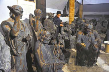 罗汉,是梵文音译“阿罗汉”的简称,为上座部佛教的最高果位,果位有点类似于现代的学位。上座部佛教唯求自我解脱,修行的结果达到了罗汉的地位,就实现了最高愿望。关于五百罗汉的来历,江西庐山博物馆汇编《罗汉图》一书时,编者有一段说明,简明地交代了五百罗汉的来历:释迦牟尼佛涅槃之后,由500名弟子整理了释迦牟尼的口诵经文,编写了佛教经文总集《三藏》。后世为了表示对他们的尊重,称他们为五百罗汉,并将他们的像刻于石上,或雕成塑像,或绘成画卷,置于寺庙内供奉。