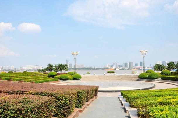 江滩公园汉口江滩公园上起武汉客运港,下至丹水池后湖船厂,全长7公里,分三期进行规划建设。第一期工程从武汉客运港至粤汉码头长1.04公里,绿地面积14万平方米,以大面积绿化和滨江公共休闲活动空间为主,展示城市景观,第二期工程(武汉长江二桥至三阳路段)于2003年9月28日对市民开放,形成3.4公里长的“绿化滨江长廊”。江滩公园保持了亲水、生态、休闲的特色。