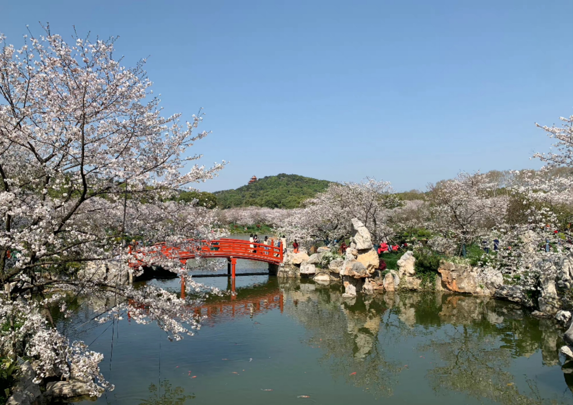 据了解,东湖樱花园是全国垂枝樱花数量最多、最集中的地方,雨晴垂枝、八重红垂枝等品种都是樱花中的珍品。诗人王心鉴观赏后在诗中这样写到“浅溪水清冷,陌上正葱茏。粉霞胜云锦,落英若平绒。芳蕤钗头凤,清婉玉娇龙。忆昔南来燕,衔去染东瀛。”