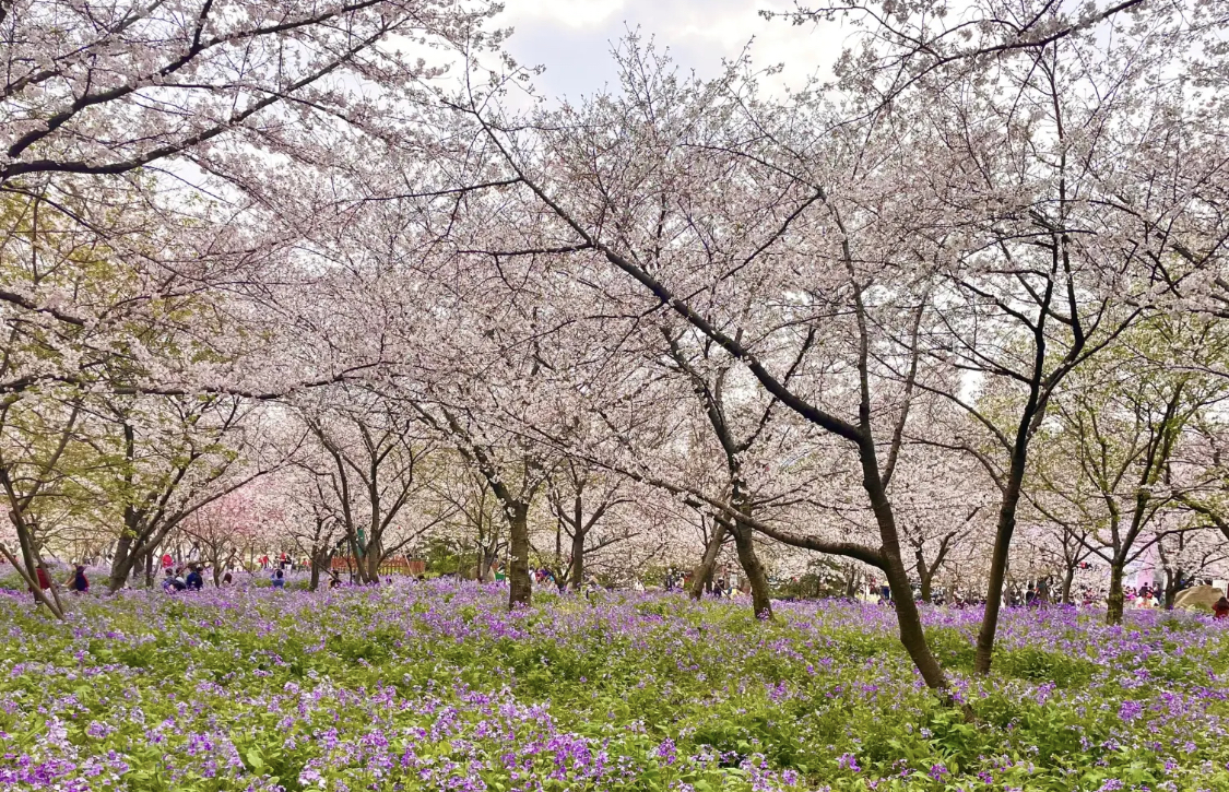 东湖樱园的樱花数量是武汉市最多、品种最丰富的。最早的一批染井吉野樱花树是日本前首相田中角荣送给周总理的礼物,从东湖宾馆移植于此,经历过这么多年的培育养护,枝繁叶茂,特别高大。