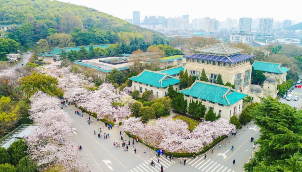 在武大校园里,除樱园外,第四教学楼、鲲鹏广场、人文科学馆、行政大楼、校医院一带以及工学部主教学楼、信息学部星湖、医学部等处皆有樱可赏。而最佳的赏樱地点,还是莫过于“樱园”,这片直接以“樱”命名的园区了。