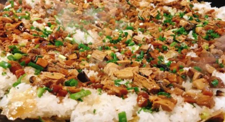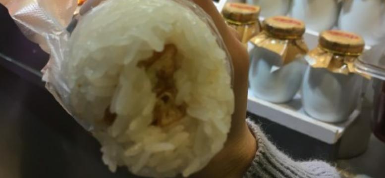 糯米包油条是武汉当地的一种特色风味小吃,也叫作滋饭团;包好的糯米油条像一个白白胖胖的小娃娃咬起来外面的糯米香软可口里面的油条有又脆又有嚼劲。