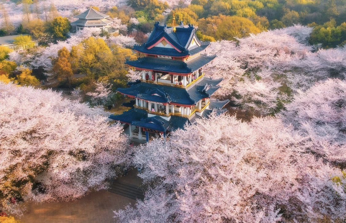 武大校内樱花约1000株,以日本樱花、山樱花、垂枝大叶早樱和红花高盆樱4种为主。从二十八株国耻之花,到千株人文之花,不仅见证了中日两国的关系变化,更承载了武大的历史底蕴。