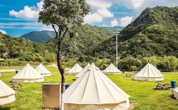 武汉姚家山处在原生态的山涧溪流,周边群山环绕,是武汉周边的热门露营去处。营地内除了野奢帐篷,还有欣赏山间美景的玻璃景观房、山野小木屋。