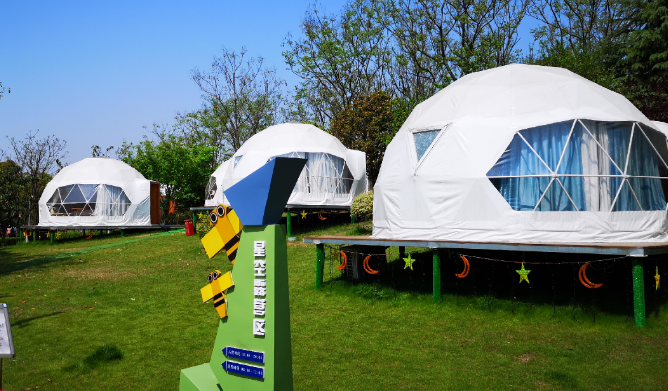 武汉花博汇景区风景优美,四季都有花海,好似梦一般的色彩,非常适合朋友约上三五好友在这里游玩;帐篷外设置了小彩灯,帐篷内还有HelloKitty、小黄人、哆啦A梦等主题房。