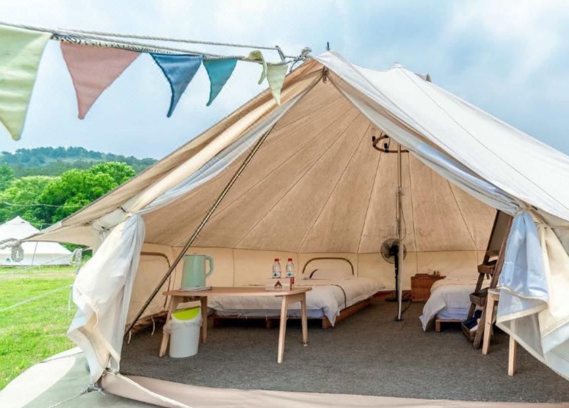 木兰草原露营位于木兰草原风景区内,这是一处以军寨文化为主题的露营地,因此总是有着一股历史的军营气息。但是今年做了改造,军寨的帐篷进行了升级,仿若五星级酒店一般好,里面配有豪华的洗浴间和床上用品,这对有小宝宝且注重干净卫生的家庭来说,是个不错的露营地点之选。木兰草原上的草坪非常的开阔,搭帐篷当然不在话下,野餐时记得带上方格小桌布,野味十足。木兰草原景区内还可以骑马,以及美食,就算轻装上阵也毫不担心。
