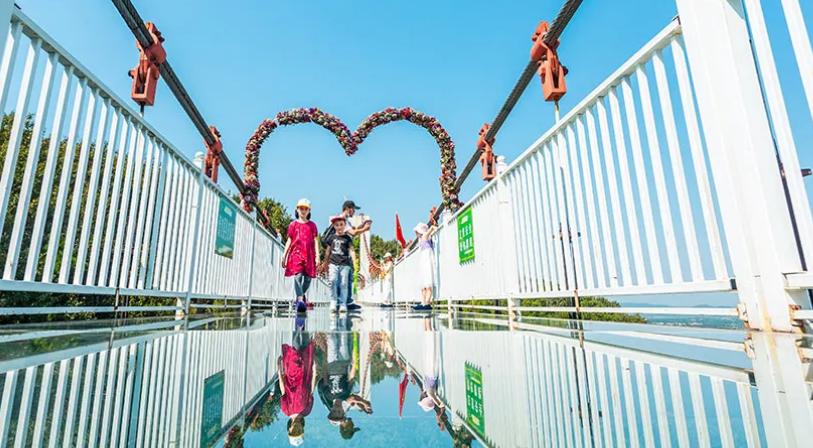 这里的玻璃桥长约100米,不算短,非常高科技,它不仅是透明的,而且还会在你行走的过程中出现各种视觉和听觉的干扰,这才是最恐怖的,比如会突然出现碎裂的声音,或者会突然出现前方没有路的立体感,总之就是非常的惊险刺激,语言文字已经形容不出来了。