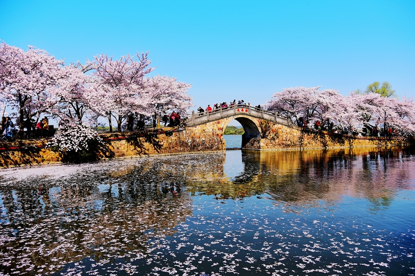 鼋头渚鼋头渚是太湖北部的一处半岛,形似浮鼋翘首而得名。在这里可以游览庞大的园林群,坐船感受太湖的烟波浩渺,登太湖仙岛一探秘境,也可以在春日来此品赏樱花,体会郭沫若先生所赞“太湖佳绝处、毕竟鼋头渚”的意境。