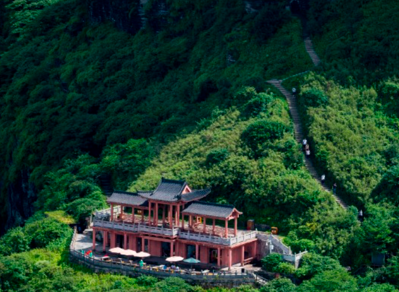 游客可以从护国寺方向上山,印江方向从棉絮岭开始登上,一路搂在山顶上走,如果碰到晴天,可以看到万米卧佛。棉絮岭到红云金顶,速度快的人可能2个小时就能到,慢的话可能要4个小时左右。下山有8000多阶楼梯,如果不想爬楼梯的话,也可以选择缆车下山。