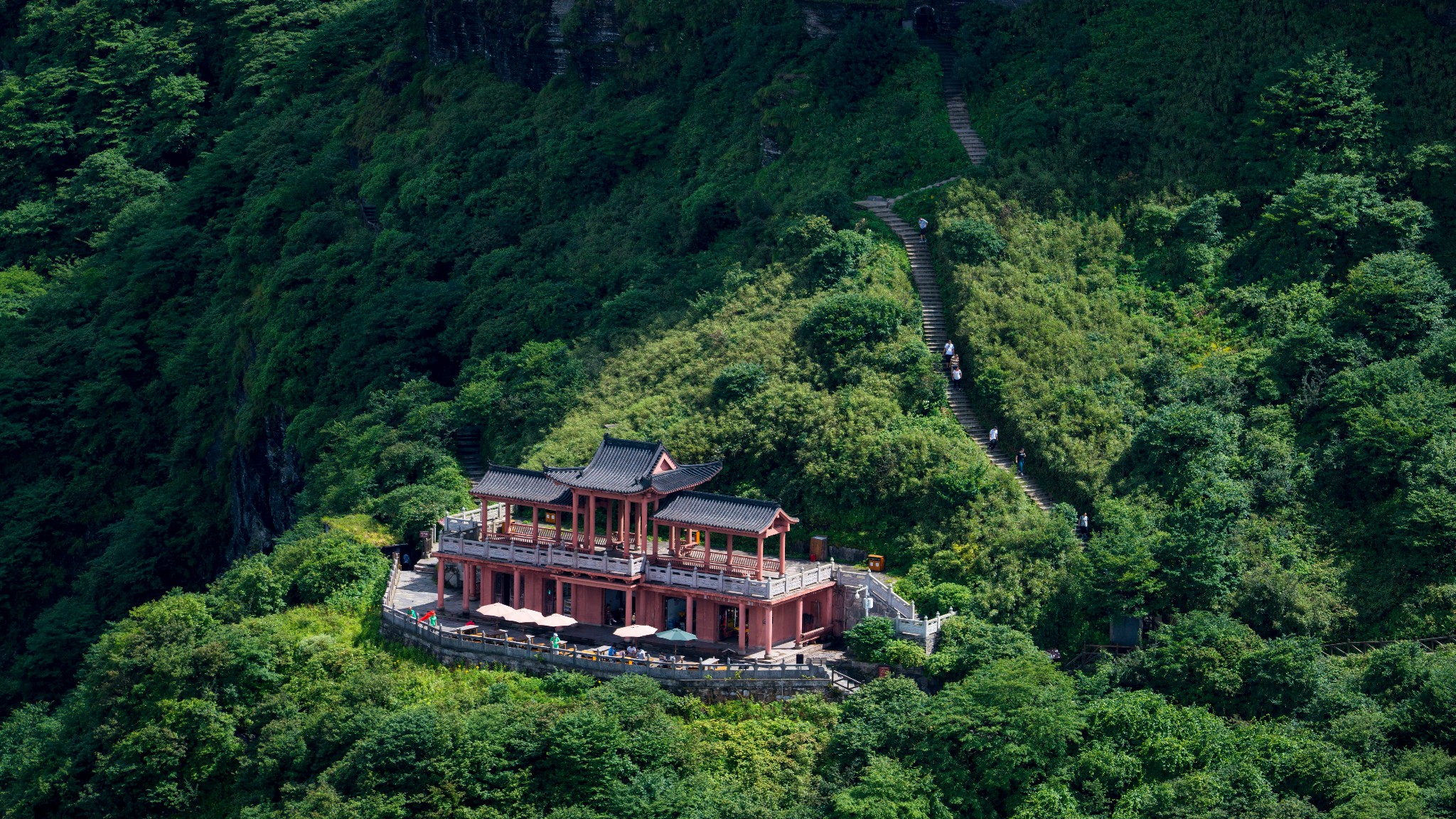 梵净山是武陵山脉的主峰,位于江口、印江、松桃三县交界处,山体庞大雄浑,摩云接天,早在明初就被尊为名岳之宗,是有名的佛教圣地。此外,梵净山还拥有成片的红叶观赏区,每到秋天,层林尽染,红叶与山上的庙宇交相辉映。在这里可以坐着缆车俯瞰连绵不断的红叶,也可以漫步于山间,感受两旁和头顶的红叶似火。