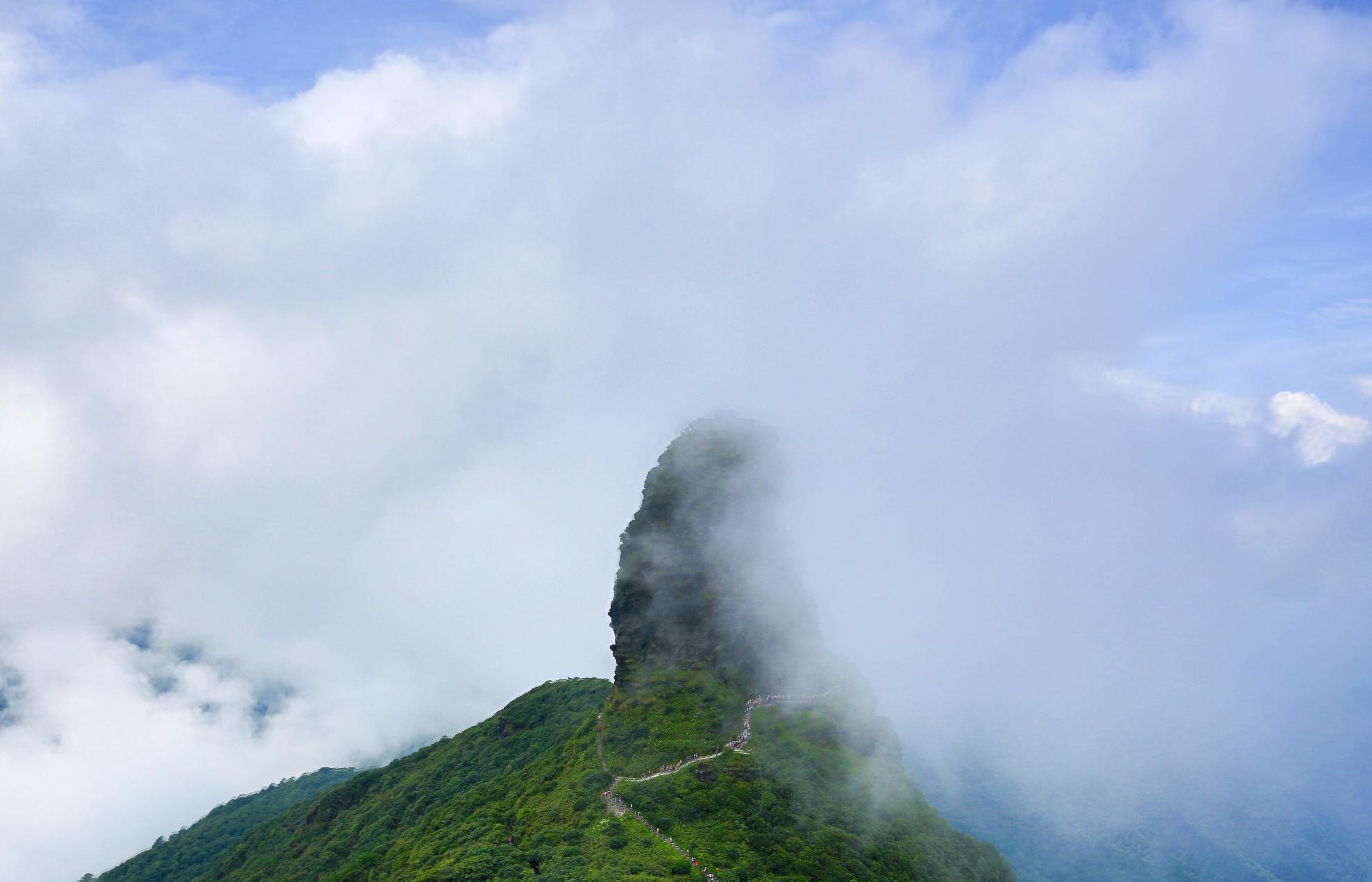 梵净山原名“三山谷”,得名于“梵天净土”。原始洪荒是梵净山的景观特征,全境山势雄伟、层峦叠嶂,溪流纵横、飞瀑悬泻。其标志性景点有:红云金顶、月镜山、万米睡佛、蘑菇石、万卷经书、九龙池、凤凰山等。