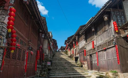 楼上古寨,始建于明朝弘治六年(1494年),是一个有着数百年历史的老寨,距离石阡县城约15公里,藏匿在一个深山老林中,至今都保留着明末清初的古村落风貌,电视剧《雄关漫道》便在这里取景拍摄。
