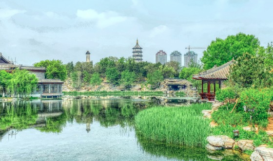宁园的古典园林,在夏日里,绿树那么青翠,天那么蓝,虽然有点热,但有风的时候还是挺凉快的。有树、桥、水、草,没有熙熙攘攘的人群,北宁公园成为市区比较清净可以沉思散心的好地方。地址:天津市河北区中山北路1号。