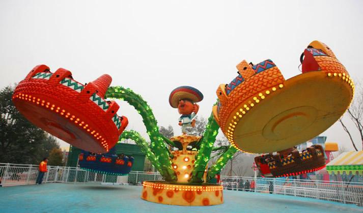 传统的加勒比海舞蹈者会随着音乐敲击乐器并丢掷帽子,坐上炫舞大草帽,让你享受六种不同的旋转魔力:中心旋转类、座舱旋转类、臂的提升、偏心圆旋转以及旋转座舱交替上升和下降,让人疯狂愉悦。