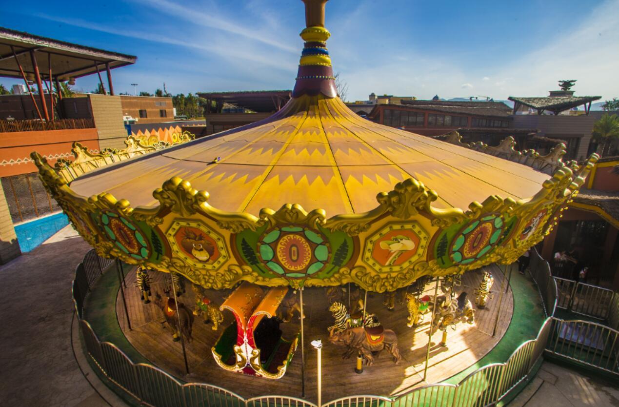 欢乐谷最梦幻的转马将童话色彩渲染至极。一座座造型独特缤纷多彩的马车,美轮美奂的外表,如梦如幻的音乐,情侣们可并排牵手骑马,在彼此关怀的眼神中,温暖的掌心中,共同绘制美好的爱情蓝图。
