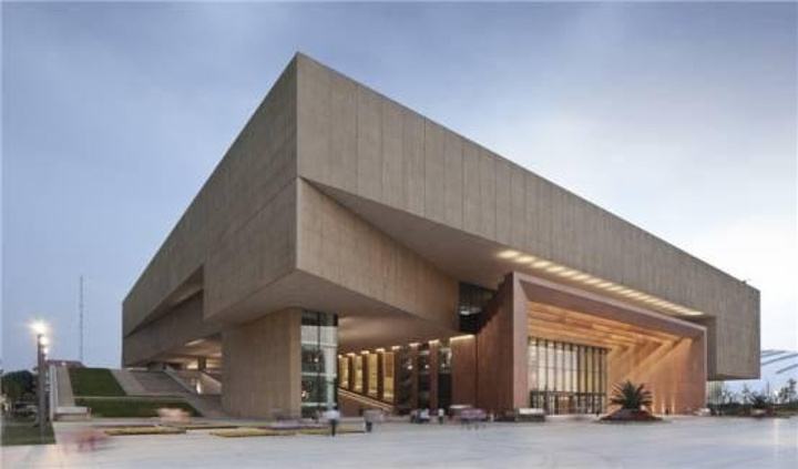 天津博物馆的建筑外形为仿天鹅造型,内部由陈列展览区、藏品库房区、图书资料中心、办公与技术用房和设备用房等五大部分组成,室外设有容积为6500平方米的天鹅湖。