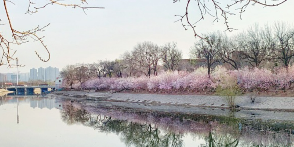 桃花堤公园不是很大,但整个北运河河畔全是桃树,是天津比较著名的一个赏桃花的景点。