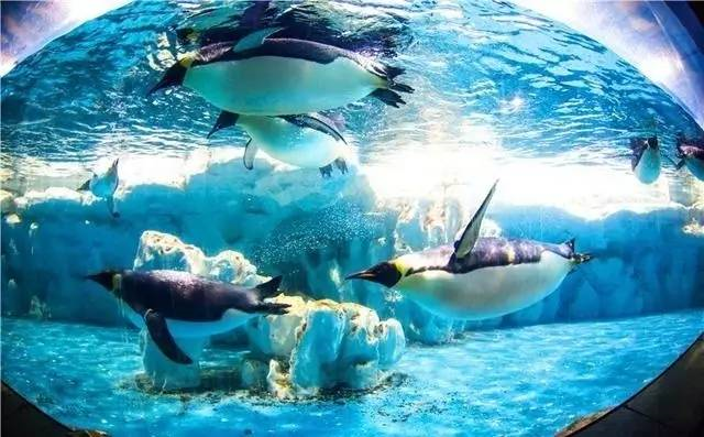 由南极企鹅岛、神秘北极村、海底隧道、远古海洋、鲨鱼港湾 、珊瑚海、白鲸湾、柳穿鱼巷、海草堂、奇趣鱼馆(含虾兵蟹将府)、未来水母馆十一大展区组成。白鲸、海豚、北极熊、企鹅、北极狐、北极狼等一百三十余只大型南北极地海洋动物、三万余条海洋生物汇聚一堂。