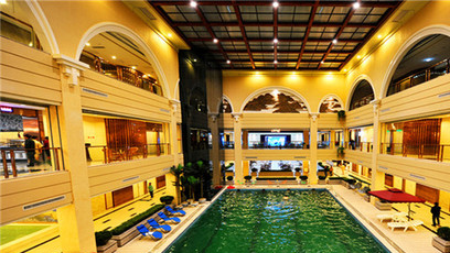 位于泰山脚下,周边山峰耸立,植被丰富,空气清新。拥有男女温泉浴区、儿童泳池、儿童乐园、自助餐厅、VIP餐厅、休闲茶吧、电玩城、棋牌室、网吧、电影院、液晶休息大厅、会议室等设施,同时设有文艺演艺厅、台球、兵乓球、健身房等康体健身设施。