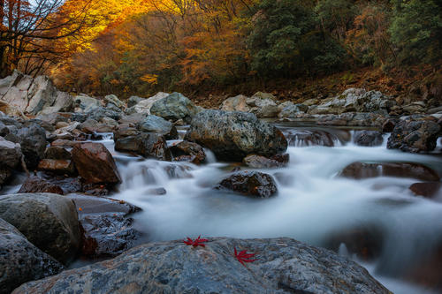 光雾山红叶是南江的特色。有五大特点:一是面积大。米仓山国家森林公园景区有401.6平方公里的面积,其中就有300多平方公里集中连片的红叶景观。二是色彩丰。一般红叶以红色为主,而光雾山(米仓山国家森林公园)的红叶颜色呈梯次变化,以蓝、绿、黄、橙、红为主。三是周期长。观赏红叶时间为每年的10月中旬至11月底,长达一个多月之久,第一个阶段看红叶五彩斑斓,第二个阶段看红叶层林尽染,第三个阶段看红叶万叶飘丹。四是种类多。光雾山红叶属落叶阔叶类乔木,有水青冈类、枫树类、椴树类、稠李类、漆树类、槭树类、桦木类、杨树类、松树类和檫木类等20余类,还有蔷薇科类和四照花类等植物,共有40多种。红叶形状有手掌状(如三角枫、八角枫),鸡爪形(如鸡爪槭)、五星形(如五角枫)、羽毛状(如盐肤木等)、心脏形(如青榨槭)、船形(如稠李类)、卵形(如水青冈类)、豆瓣形(如栓翅卫矛类)、椭圆形(四照花类)、针形(如落叶松)、扇形(如银杏)、鸭掌形(如檫木类)等20多种形状。红叶颜色有火红、血红、酒红、褚红、铁红、玫瑰红、淡红、紫红、金红等10多种颜色。五是品位高。先后曾有英国、德国、法国、加拿大和美国的植物专家考察后,把光雾山景区称为“金区”,把光雾山红叶称为“金叶”。