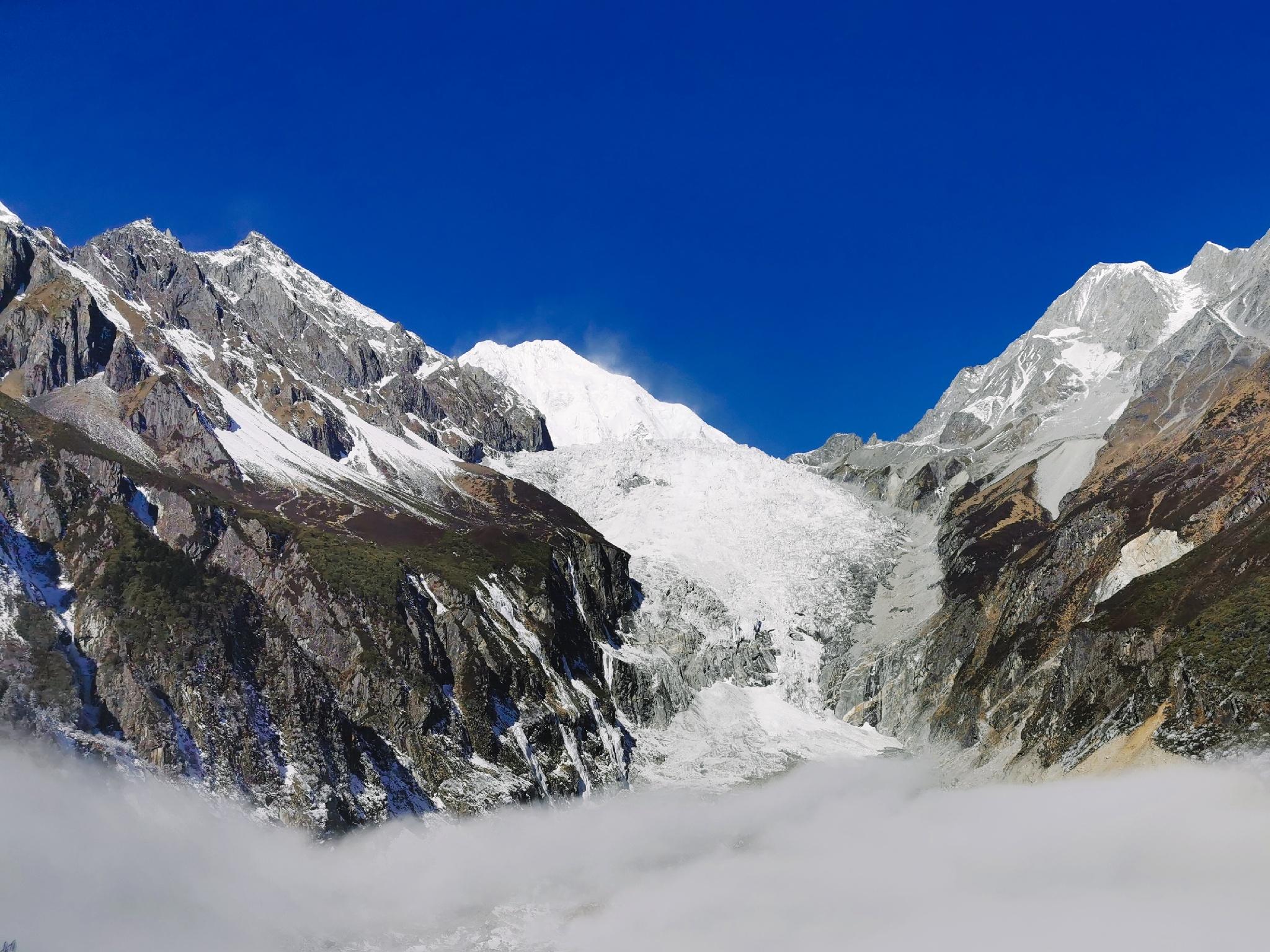 冰瀑布滑动崩塌便会产生“冰雪崩”,这是海螺沟冰川景观中最蔚为壮观的一幕。