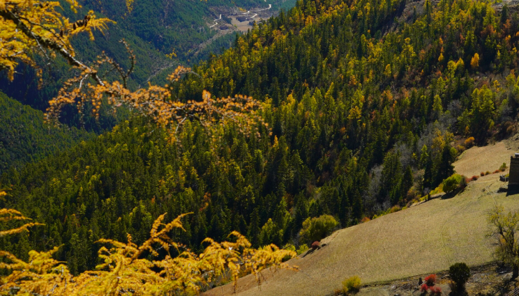 当微风乍起之时,密林中的枫树、槭树、桦树、鹅掌松、落叶松等,雪山、温泉、森林、村落,藏族文化,构成了一副神奇的图画。尤其是在每年十月,俄初山的风景让每一位来访者如痴如醉。此时的俄初山恰似一位待嫁的新娘:头披圣洁的哈达,身着五彩的秋装。在俄初山顶远眺亚丁三座神山,景色十分壮观。十月的高原天空格外的高远和湛蓝,而天空下是五色的山峦。高山在我的心中似乎只有单调的几种颜色不是就是青色。通往稻城的路是一条彩虹路,多彩而且丰富。而且俄初山山顶是野营的理想地方,在亚丁是不允许自带帐篷的,但你可以在俄初山过一把野营的瘾。山顶的草坪优美,视野开阔,非常适合野营,但缺点是缺少水源,需要把水带上。还有哦山顶海拔高,晚上比较冷,防寒要放到首位。