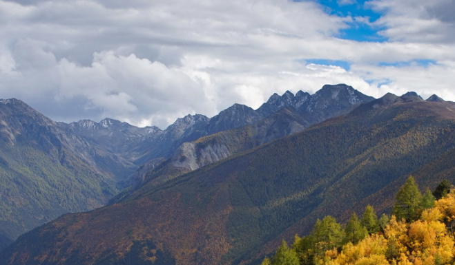 俄初山最美的季节出现在每年的9月中旬到10月初,山杨的金黄、落叶松的鹅黄、槭树的鲜红、冷杉和云杉的黛绿交织在一起,黄的明丽,红的娇艳,绿的和谐,制造出五彩缤纷、如梦似幻的色彩。秋风乍起,满山遍野的山杨树树叶不停地晃动,在阳光折射下如繁星闪耀,极为壮观,“闪光的山”由此而来。从香格里拉乡至仁村,公路便分成了左右两路,向左是通向亚丁,向右就是上俄初山了。这中间有很长一段时间是在干热河谷中行走,请不要失去耐心,大约20公里之后便开始出现森林了,山坡也开始变得五彩斑斓,俄初山最好的景色是在路上,到了山顶秋色反而淡了。