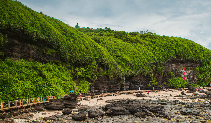 北海鳄鱼山火山公园位于北海市涠洲岛南湾西侧鳄鱼岭,距镇中心约4公里,在这里可看到最完整的火山活动遗迹。景区内有鳄鱼山灯塔、火山口遗址、龙宫探奇、藏龟洞、海蚀拱桥、月亮湾、珊瑚沉积岩、月亮广场等。还有火山弹冲击坑、古树化石、水帘洞、海蚀柱、海蚀墩等地质奇观,站在这里,不禁感叹大自然的神奇力量。园内还有岛上的标志性建筑——灯塔,是渔民们的守护灯,登上塔顶的瞭望台,眺望蔚蓝无垠的海岸。