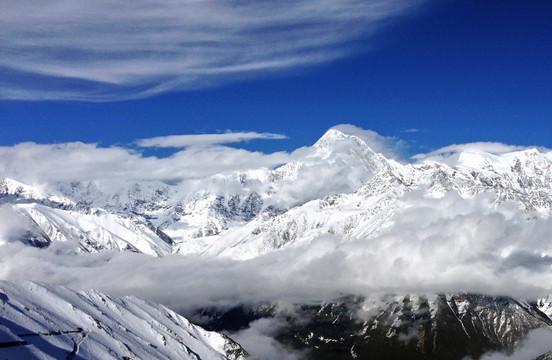 贡嘎山贡嘎山位于四川省康定以南,是大雪山的主峰,是四川省的最高峰,被称为“蜀山之王”。贡嘎山主峰由花岗闪长岩组成,受海洋季风影响,形成多样的植被和自然生态环境,山间蜿蜒两条姐妹峡谷:燕子沟和海螺沟,其中燕子沟又被称为东方阿尔卑斯。