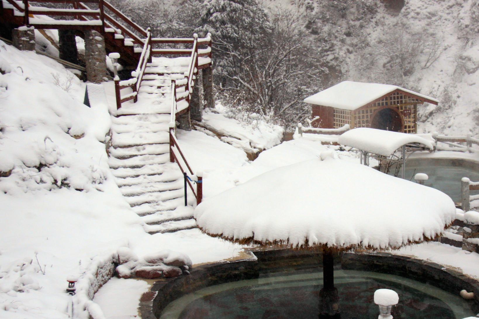 最极致的享受,便是浸泡在舒服的温泉之中,放眼望去,满目皑皑白雪,悠然地欣赏着海螺沟独特的雪景,你可以看到远处的雪山,空中飞舞的雪花落到雾气氤氲的温泉池里,落到温暖的肌肤上,眨眼便化为虚无。