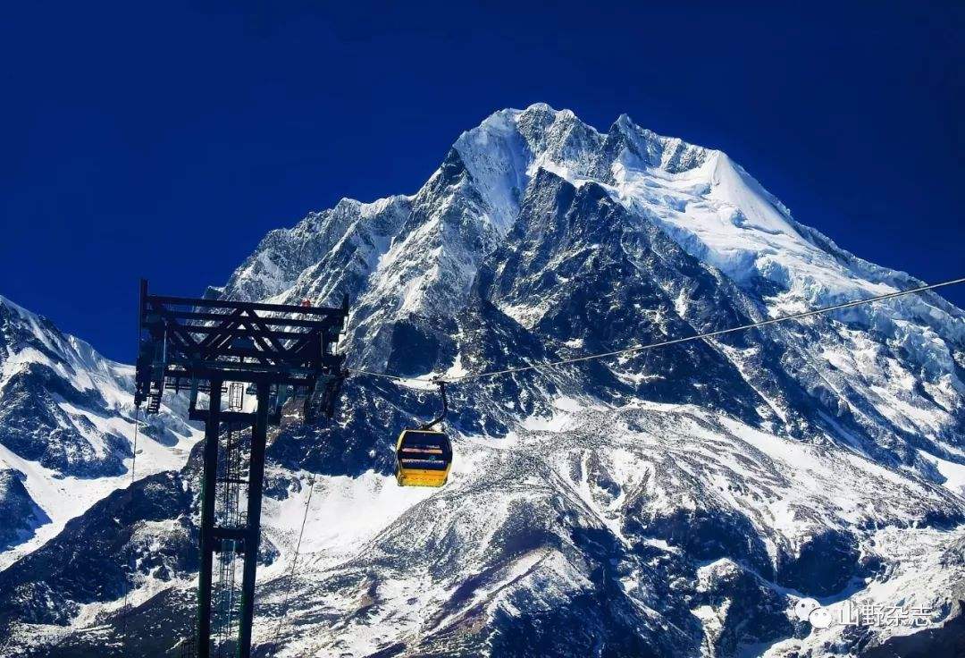 海螺沟冰川索道,起于三号营地干河坝,经山顶观景台,由西向东横跨冰川,到达风光无限的四号营地长草坝。冰川索道为单线循环拖挂式索道,全长3500米,索道斜跨大半个冰川。